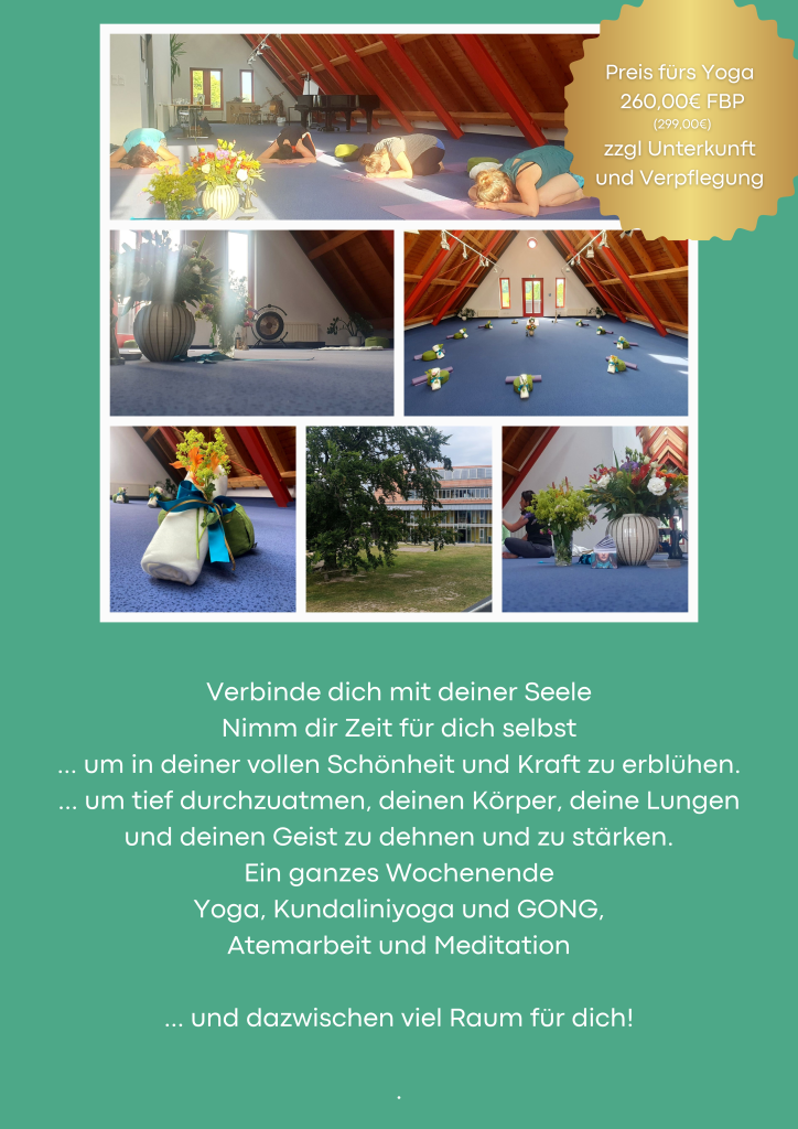 Preis fürs Yoga: 260,00 € „Frühbucherpreis“ – sonst 299,00 € (pro Person/ Mindestteilnehmer 6 Personen)