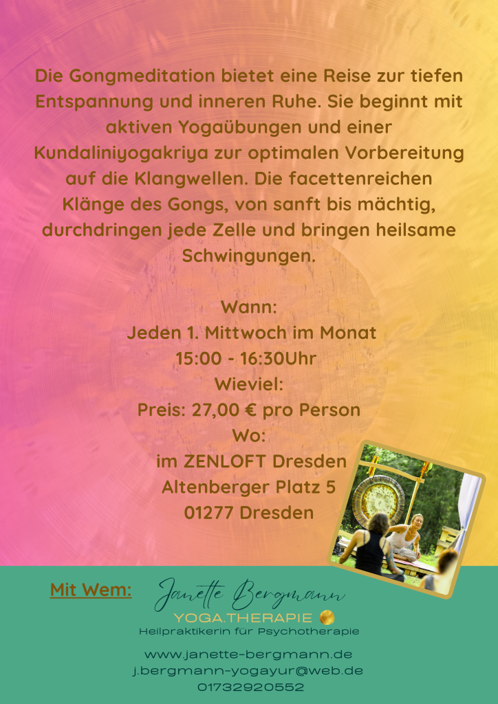 17:15 – 18:15 Yogawalking oder Onlineyoga | 17:30 – 19:00 Yoga | https://zenloft.de/kundaliniyoga-und-gongmeditation/ | 17:30 – 19:00 Yoga | 16:30 – 18:00 Yoga |